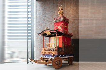 G階 赤坂氷川山車 展示スペース 地域との共生をめざす東京赤坂キャンパスでは、保存会や関係者の尽力により修復された、赤坂氷川山車(だし)をエントランスに常設展示しています。 |