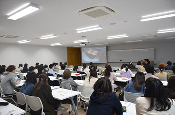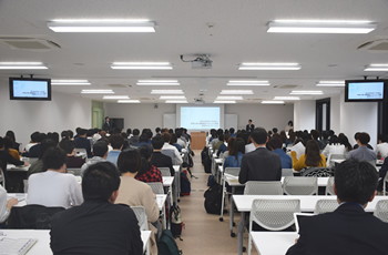 3階 多目的ホール(301) 授業のほか、市民公開講座や大学院生の研修成果報告会、海外からのご来賓の方々による講演会など各種イベントで利用される階段教室です(176席)。 |
