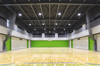 3階 体育館 バスケットボールコート1面の広さを持つ体育館は、冷蔵庫や更衣室、シャワールームも完備。授業のほかにサークル活動などでも利用できます。防災訓練や大学祭等でも活用されています。 |