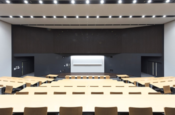 1階 講堂 1,000人収容できる広々とした講堂は、さまざまな講演会やシンポジウム、学会などが開催可能です。都心の学術拠点のひとつとして、幅広く活用されています。