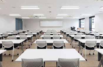 3階 特大講義室(302/303) キャンパス内の教室では最大の収容数となっており、グループワークなどでも利用されています。 |