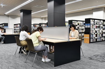 G階 図書館 医療福祉系を中心とした専門書をはじめ、1万6000冊の資料や書籍がそろっています。パーソナルスペースもゆったり配置され、集中して学修することができます。
