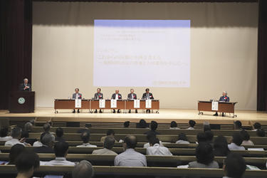 国際医療福祉大学・国際医療福祉大学大学院は6月26日、今年4月に東京赤坂キャンパスが開設したことを記念して、「これからの医療と介護を考える~報酬同時改定の評価と人材確保を中心に~」をテーマに講演会を開きました。主催者を代表して大友邦学長が挨拶し、「本講演会が、これからの日本の医療と介護の近未来像に関する情報と認識を共有する機会になることを願っています」と述べ、国際医療福祉大学大学院の中村秀一副大学院長の司会で活発な意見が交わされました。会場となった東京赤坂キャンパス講堂には、800人を超える医療福祉関係者や学生らが熱心に聴講していました。最初に自治医科大学学長で社会保障審議会医療部会会長である永井良三氏が「臨床医学の多文化性」と題して基調講演を行い、医学の元は今から約2500年前の古代ギリシャの医師ヒポクラテスが患者に寄り添う医療、観察、衛生環境などを重視したことを宣誓した「ヒポクラテスの誓い」にまで遡ると指摘、これはいまも「医の原点」であると強調されました。