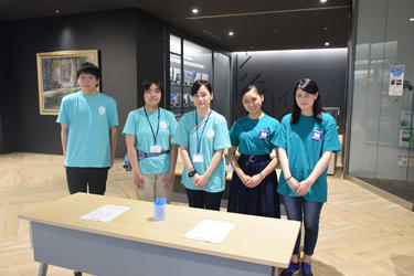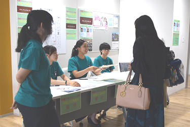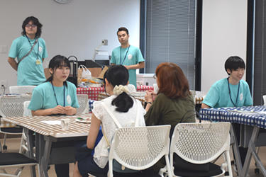 また、4月に入学したばかりの学生が、来場した高校生や保護者らとお茶を飲みながら交流する「カフェ・ド・赤坂」も好評で、学生生活や授業内容などの話題で盛り上がりました。「サークル体験コーナー」では、アルティメット(フライングディスクを使ったゲーム)、手話、ダンスの3サークルがそれぞれの会場で実演・見学会を実施しました。