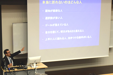 さらに、精神分析学にもふれ、「選択肢が多い人、ゴールが見えている人、『明日があるさ』と思える人などが、本当に折れない人だ」と講義を締めくくりました。