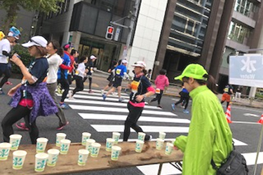 東京2020オリンピック・パラリンピック競技大会に向けて雰囲気を盛り上げるなどの目的で、港区等主催の第1回ハーフマラソンが実施されました。ボランティア参加した1年生2名は大会当日朝7時45分に、JR田町駅近くの指定場所に集合し、東京タワーを目指す約5000人のランナーに対し、熱心に給水活動を実施しました。
