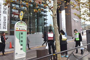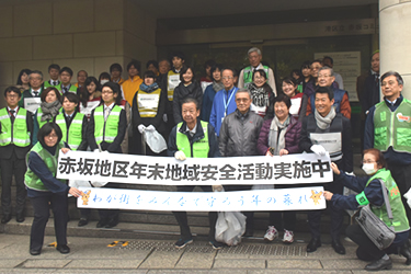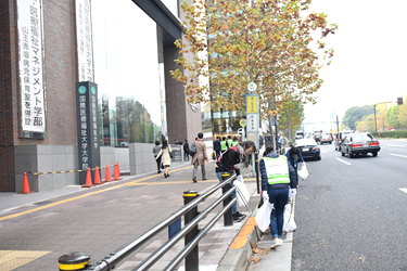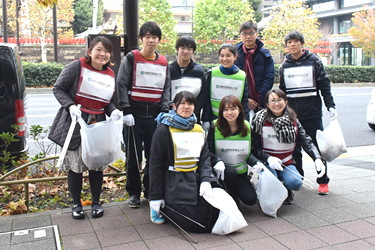 東京赤坂キャンパス前の国道246号線(青山通り)で12月7日(金)、「ごみ拾いボランティア」が実施され、「赤坂同好会」の学部生や大学院生、職員らが参加しました。「ごみ拾いボランティア」は、国道246号線沿いの7~8つの町内会と近隣企業が主催し、港区と赤坂警察署の支援のもと、原則として毎月第1金曜日の朝9時から9時30分に実施されています。東京赤坂キャンパスからは、学部の1年生で構成される赤坂同好会と大学院生、大学職員が毎回参加しています。この日は、金曜の朝に授業がない学生たちも早起きをして、地域の方々と熱心に美化活動に取り組みました。