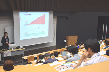 1時間30分にわたる講演で、石川教授はこうした医療費の仕組みを詳しく解説し、会場からはより詳細な内容を求める質問が出るなど、参加した皆さんは熱心に聴き入っていました。