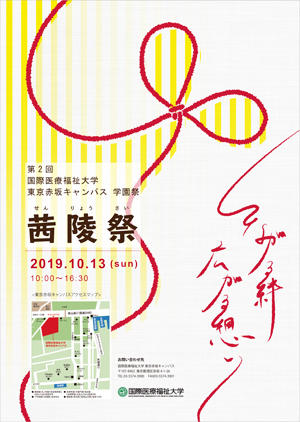 国際医療福祉大学 東京赤坂キャンパスは、旧赤坂小学校の跡地に開設されています。赤坂小学校の旧称が「第3中学校区第3番小学校茜陵学校」だったことにちなみ、大学祭の名称を「茜陵祭」としました。赤坂一帯にはかつて、茜(あかね)の花が群生していたそうで、赤坂小学校の校章にもその花弁があしらわれています。