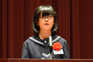 最優秀賞の東京都・桜美林高等学校1年、山本彩佳さんの「ありのままの自分で」はじめ個人賞、学校賞に表彰状などが贈られた後、個人賞の朗読が行われ、会場に詰め掛けた関係者や本学学生の喝采を受けていました。最優秀賞以外の受賞者と個人賞の作品は次の通りです。