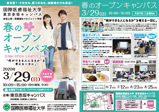 3月29日(日)に開催を予定しておりました東京赤坂キャンパスのオープンキャンパスは、このたびの新型コロナウイルス感染症の状況等を鑑み、開催延期とすることといたしました。