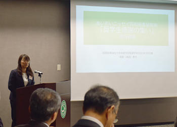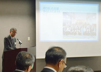引き続き、元奨学生を代表して卒業生の藤沢正樹茨城県守谷市障がい者福祉センター施設長と齋藤恵子埼玉県立大学看護学科准教授の2人が近況を報告しました。この中で、藤沢施設長は地域における障害者支援に取り組んでいる現状を報告し、「障害者の方を少しでも支援できればと思っている。学生時代奨学生として支援していただいた多くの方々に感謝している」と述べました。齋藤准教授は卒業後、助産師として勤務したことや青年海外協力隊員としてラオスで活動したことなどを紹介し、「多様な文化的背景を持つ外国人には歩み寄って配慮することが大切だ」などと述べ、支援に感謝しました。