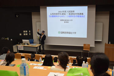総合ガイダンスでは心理学科と医療マネジメント学科の学修内容や卒業後の進路の説明のほか、両学科とも事前収録した『教員による在学生数名へのインタビュー動画』により授業の様子やキャンパスライフについて在学生の声を聞いていただきました。