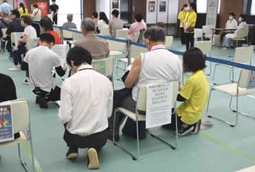 5月17日、東京赤坂キャンパスW棟10階で、東京・港区の高齢者向け新型コロナウイルスワクチン集団接種が始まりました。港区はおよそ4万5000人の高齢者の区民のために区の施設を含め7か所の集団接種会場を設けることになり、このうち1か所を本学が提供しています。初日の17日は朝から多くの区民が訪れて広い会場で接種を受けていました。港区では当初8月7日までの予定だった高齢者集団接種のスケジュールを前倒しして7月末に終えることになり、この会場では毎週月・火・金曜の3日間、接種が行われます。今後2回目の接種が始まると1日に最大で500人以上が接種に訪れる予定で、外国人の住民も多い地域のため本学が通訳の担当者を会場に派遣して協力することにしています。
