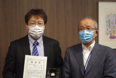 表彰式では、大友邦(おおとも・くに)学長から賞状と盾が贈られました (2020年3月)