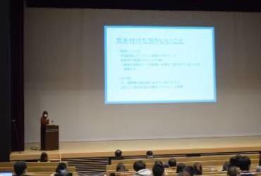 両学科の4年生の代表4人から、就職活動の流れ、自己分析のすすめ方、エントリーシートの書き方、スケジュール管理などについて、アドバイスを受けました。