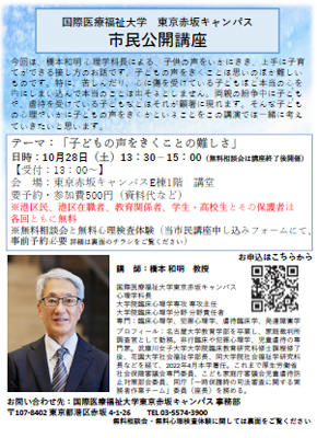 10月28日(土)市民公開講座「子どもの声をきくことの難しさ」開催