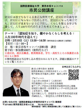 2月10日(土)市民公開講座「認知症を知り、健やかなくらしを考える: 人生100年時代を迎えて」開催
