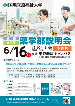 成田、大田原両キャンパスの薬学部長らが、求められる薬剤師像、国試対策、両キャンパスの特長、2025年入試概要などをお話します。