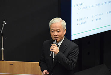 成田キャンパス成田薬学部の米持悦生学部長は、成田キャンパスには全医療系学部が揃っている特色をアピール。「チーム医療を学ぶ『関連職種連携教育』の充実と、必修の海外研修で国際性を高めた薬剤師の養成を目指す」と力強く語りました。