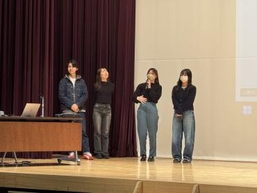 報告は、心理学科、医療マネジメント学科の学生5人で、内定先は公務員・病院・企業など多岐にわたります。それぞれの分野でどんな準備をしてきたのか、就活で役立ったこと、苦労したこと、スケジュール管理のコツなど、等身大のアドバイスが盛りだくさん。実体験に基づいた話だからこそ、後輩たちも真剣に聞き入っていました!先輩の経験が、これから就活を迎えるみなさんの心強いヒントになりますように。