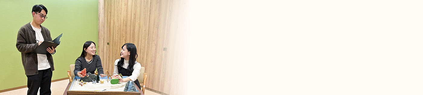 赤坂心理・医療福祉マネジメント学部心理学科では、臨床心理の最前線で活躍している教員が多数おり、最新の設備、多数の医療福祉関連施設、大学院との一貫教育を通して、医療福祉の現場で実践でき、さまざまなライフステージに寄り添える、「心のケア」のエキスパートを養成します。