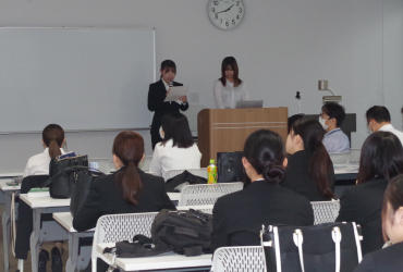 各病院ごとにエリアや特性による施設や業務の違いもあるため、就職を含めた今後へ向けてそれらの経験を共有する機会ともなりました。総合病院での実習を終えた学生からは「他職職の方も含めて院内で連携する様子を実際に体験することができて、これまで学んできたチーム医療の重要性を実感することができた」と話していました。今年は各教室に分かれて、各医療施設での報告実施となり、2年生以下の在学生は関心のある報告を移動しながら聴き入っていました。また各グループの報告後には学生や教員から様々な質問が寄せられていました。